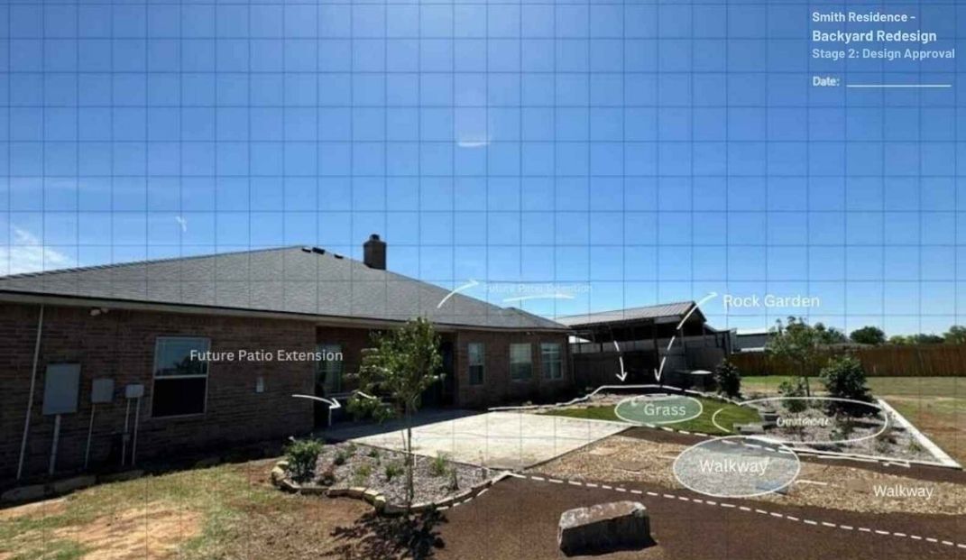 We start with an on-site visit to your Lubbock property — listening to your goals, walking the space, and building a concept that fits your vision and your budget. No pressure, just good planning.